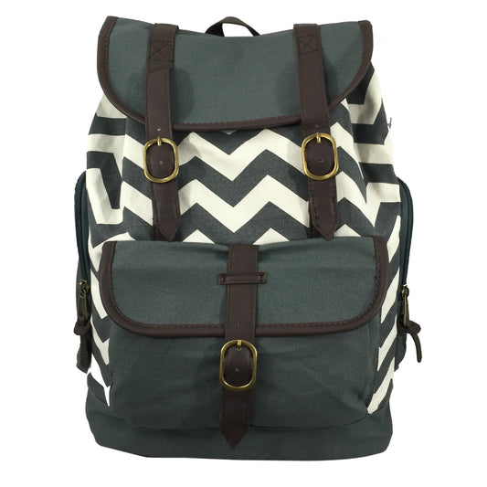 Stylish Grey White Chevron Canvas Laptop Backpack for 15-Inch Laptops – Perfect Unisex Travel and School Bag for Teens and Adults